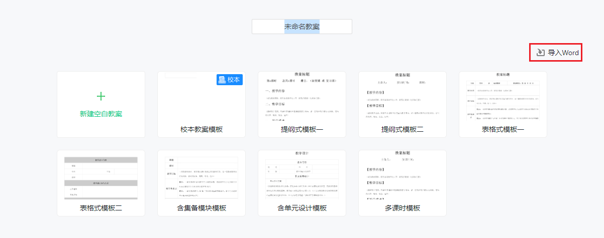 点击【新建教案】,在模板选择页面点击【导入Word】