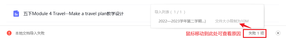 单次解析文件大小限制不超过10M,若超出,老师可以通过复制粘贴或者将文件内容拆分为多个的方式导入云教案里
