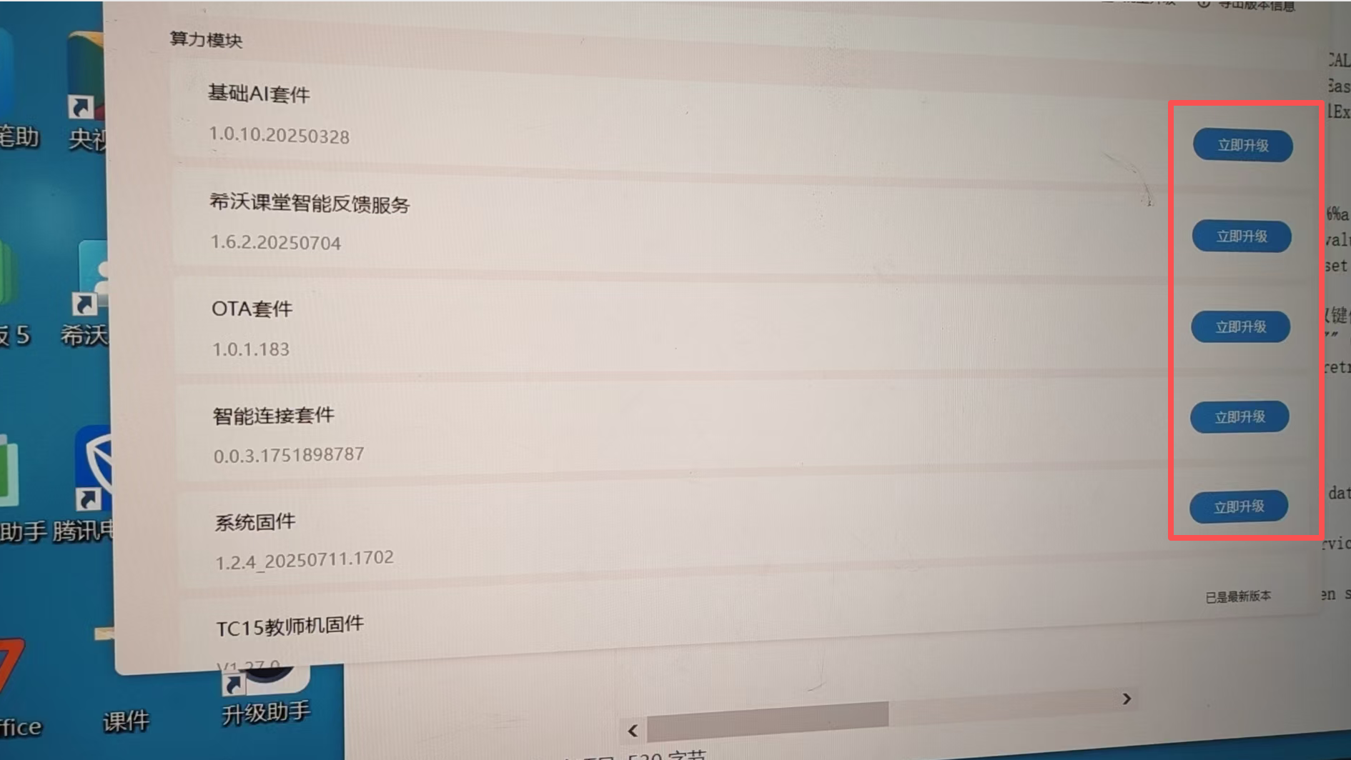 注1:如算力盒子的固件和套件等显示立即升级,暂不支持升级助手进行升级,需要使用TF卡或者算力盒子通电通网静默升级,
