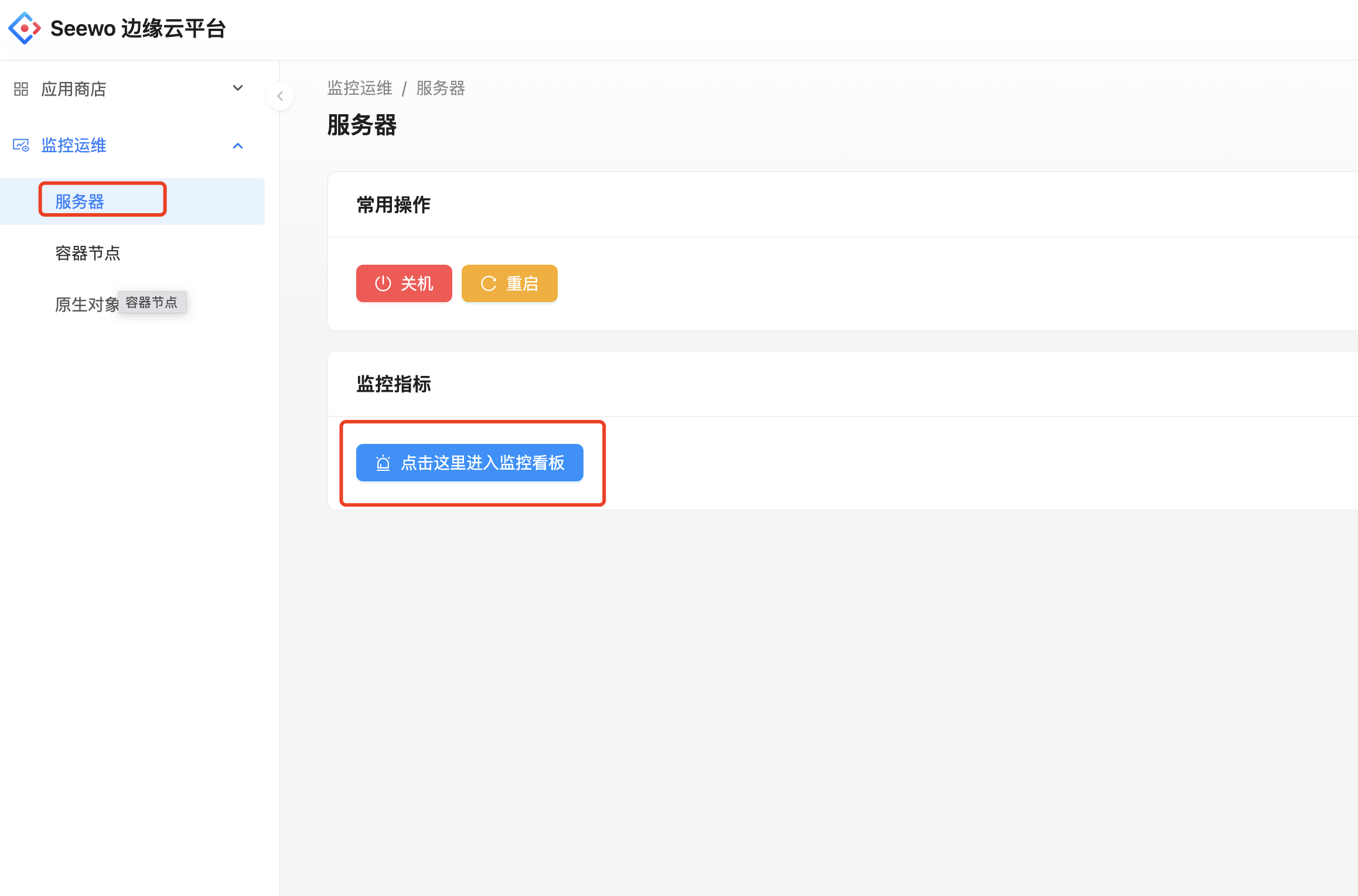 进入界面后,选择监控运维下的服务器节点,进入监控面板
