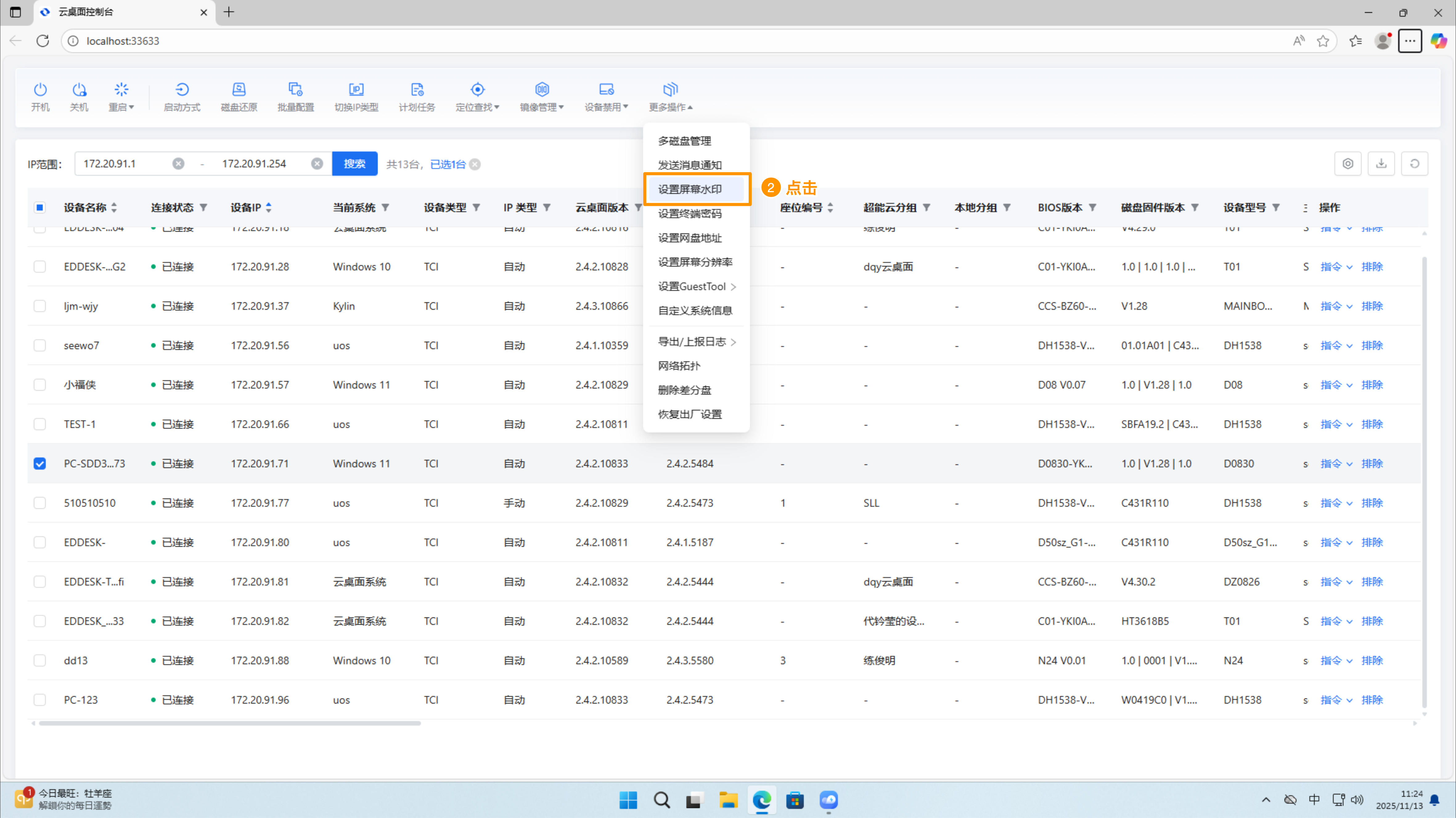 第1步:使用管理端设备,打开云桌面控制台。单选/多选需要管理水印的设备