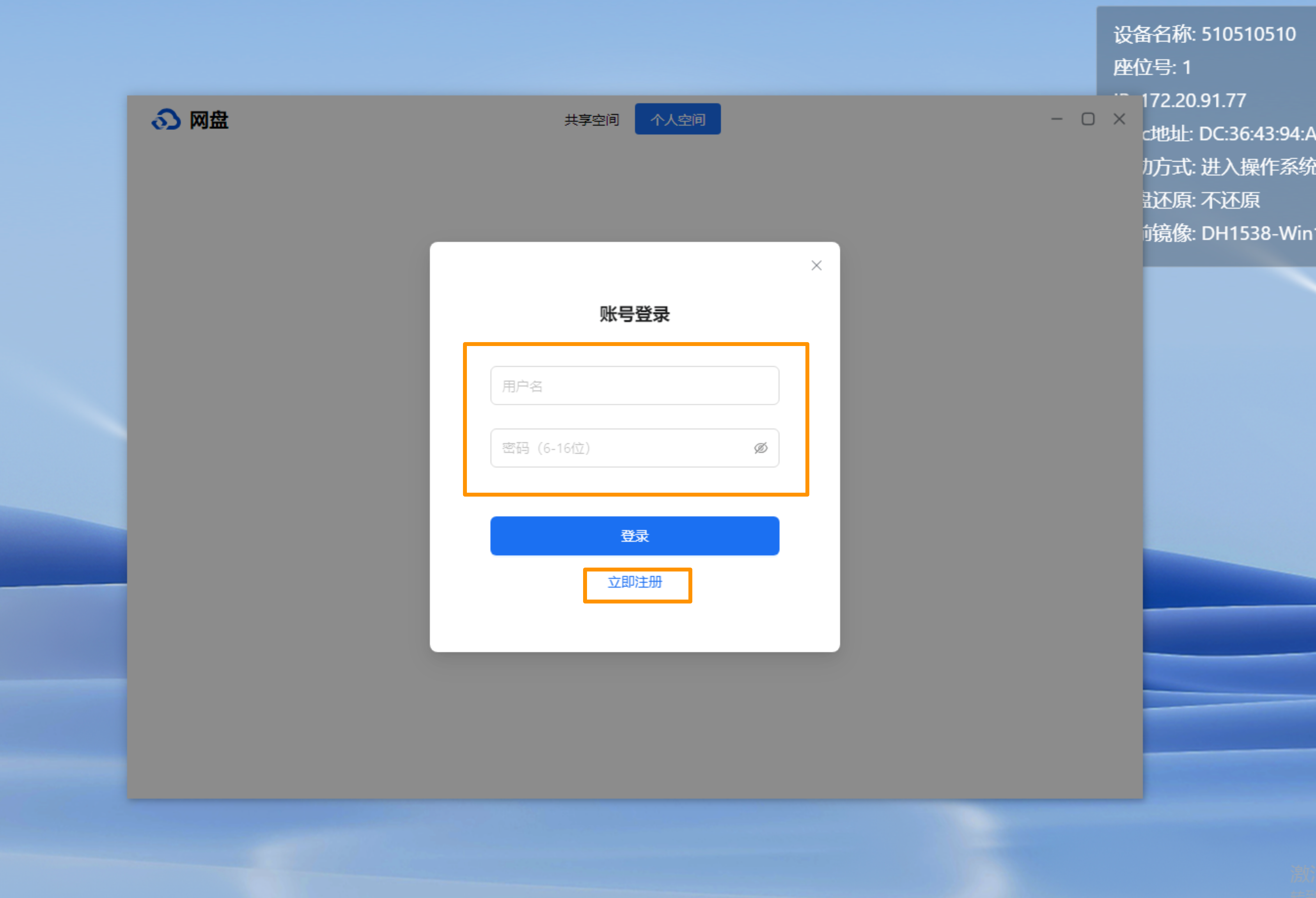 1、打开云桌面网盘后,点击【个人空间】-【立即登陆】