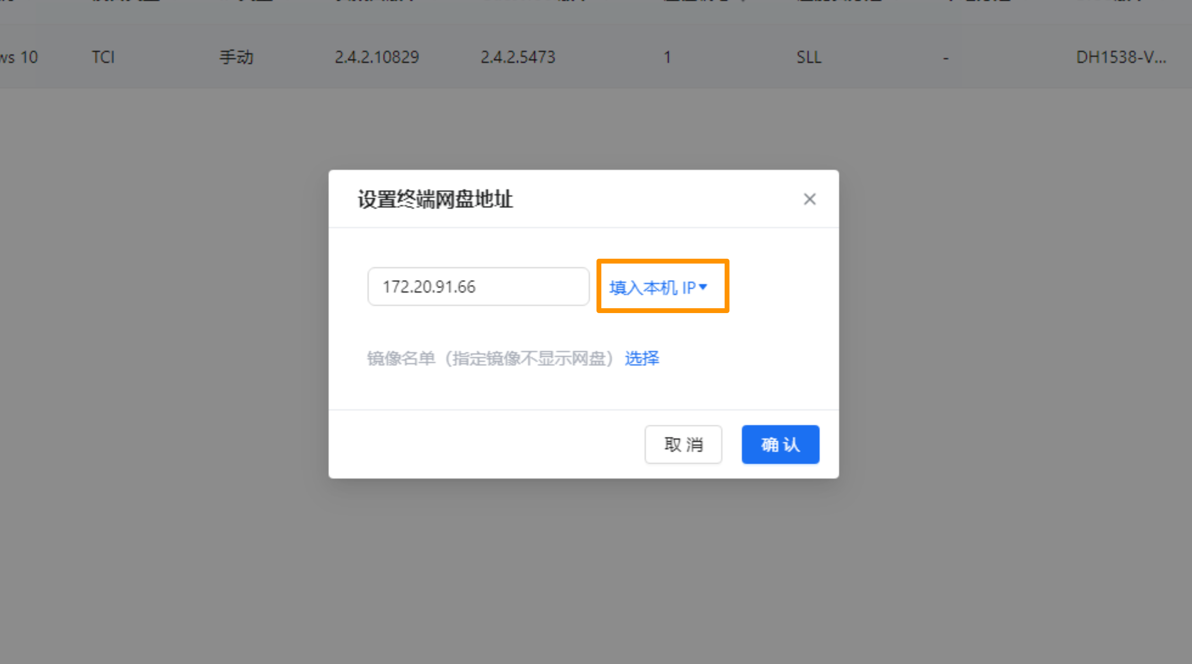 第五步:设置终端网盘地址,填入管理员设备网络IP(一般为创建共享网盘的本机IP),点击确认。即完成网盘共享