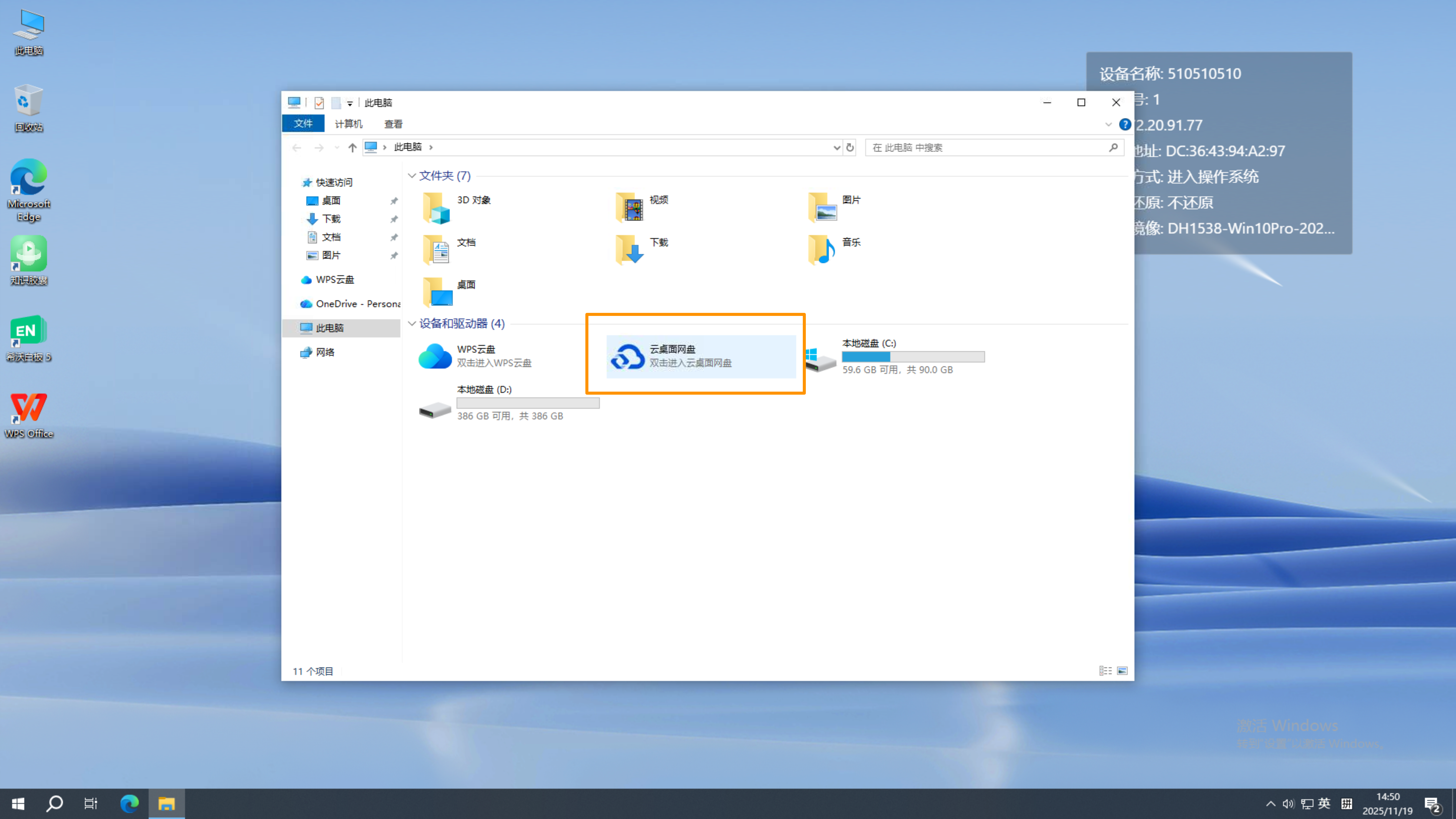 第一步:学生可点击“此电脑”,即可看到【云桌面网盘】