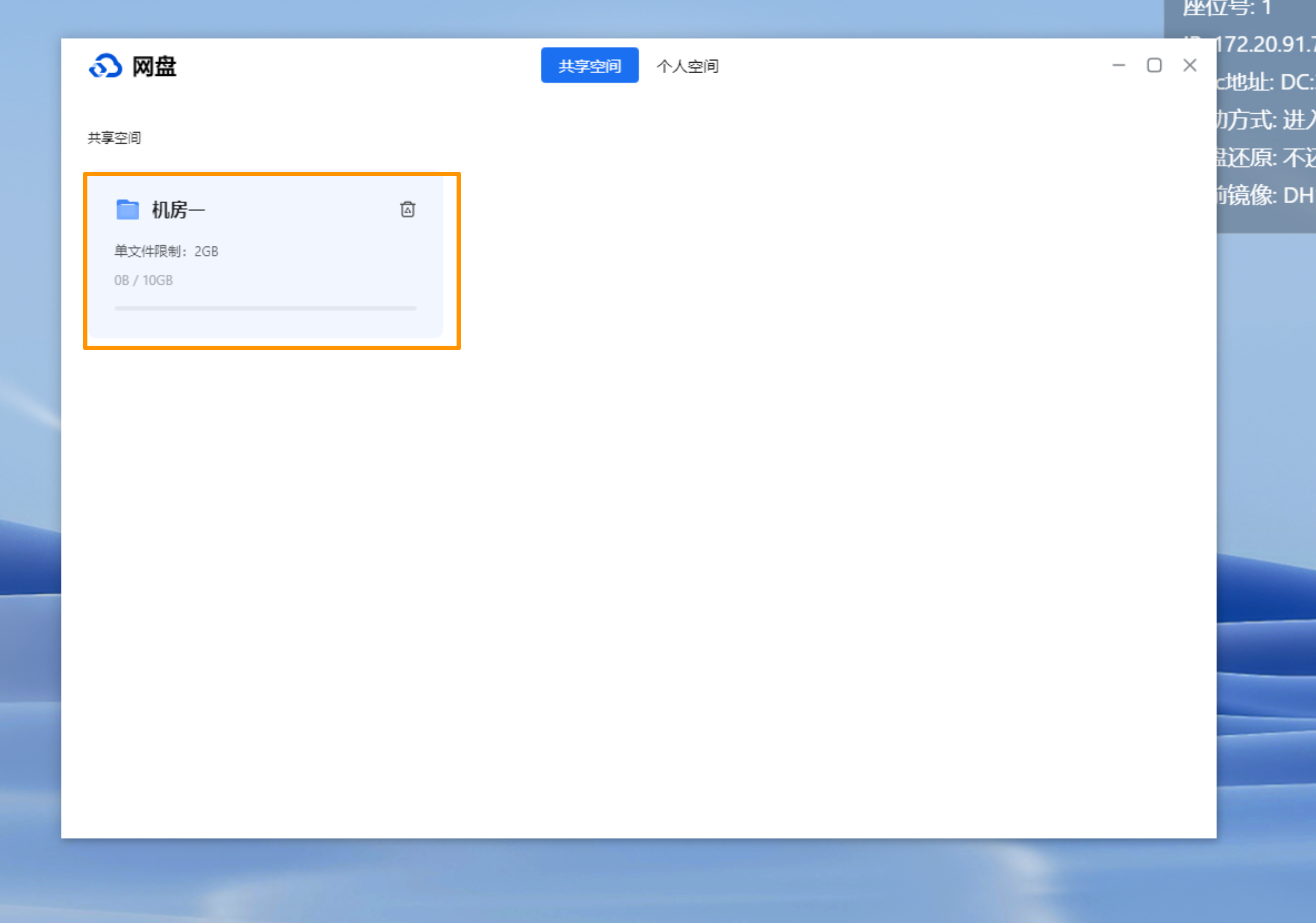 除了共享空间网盘以外,还支持设置个人网盘