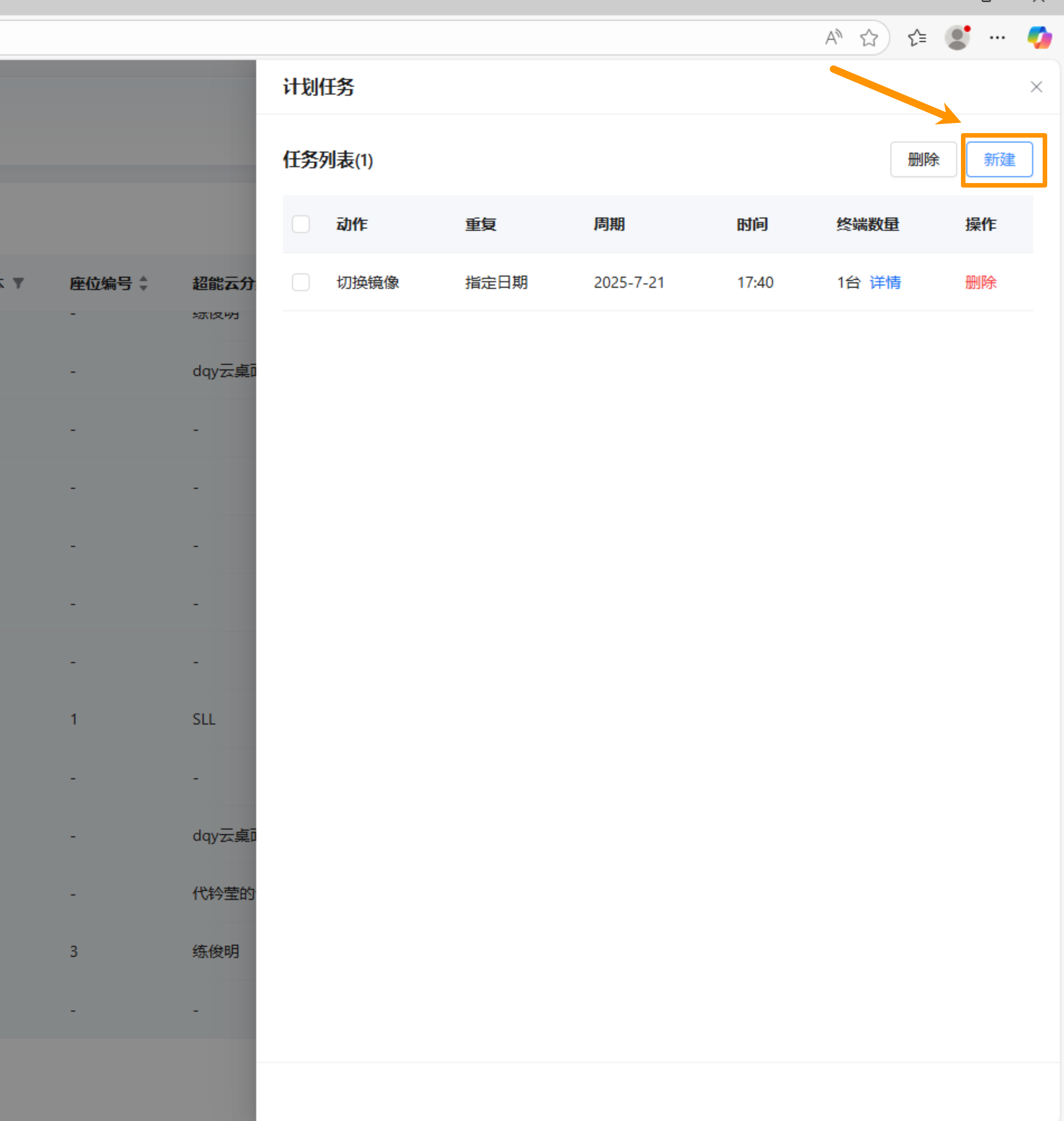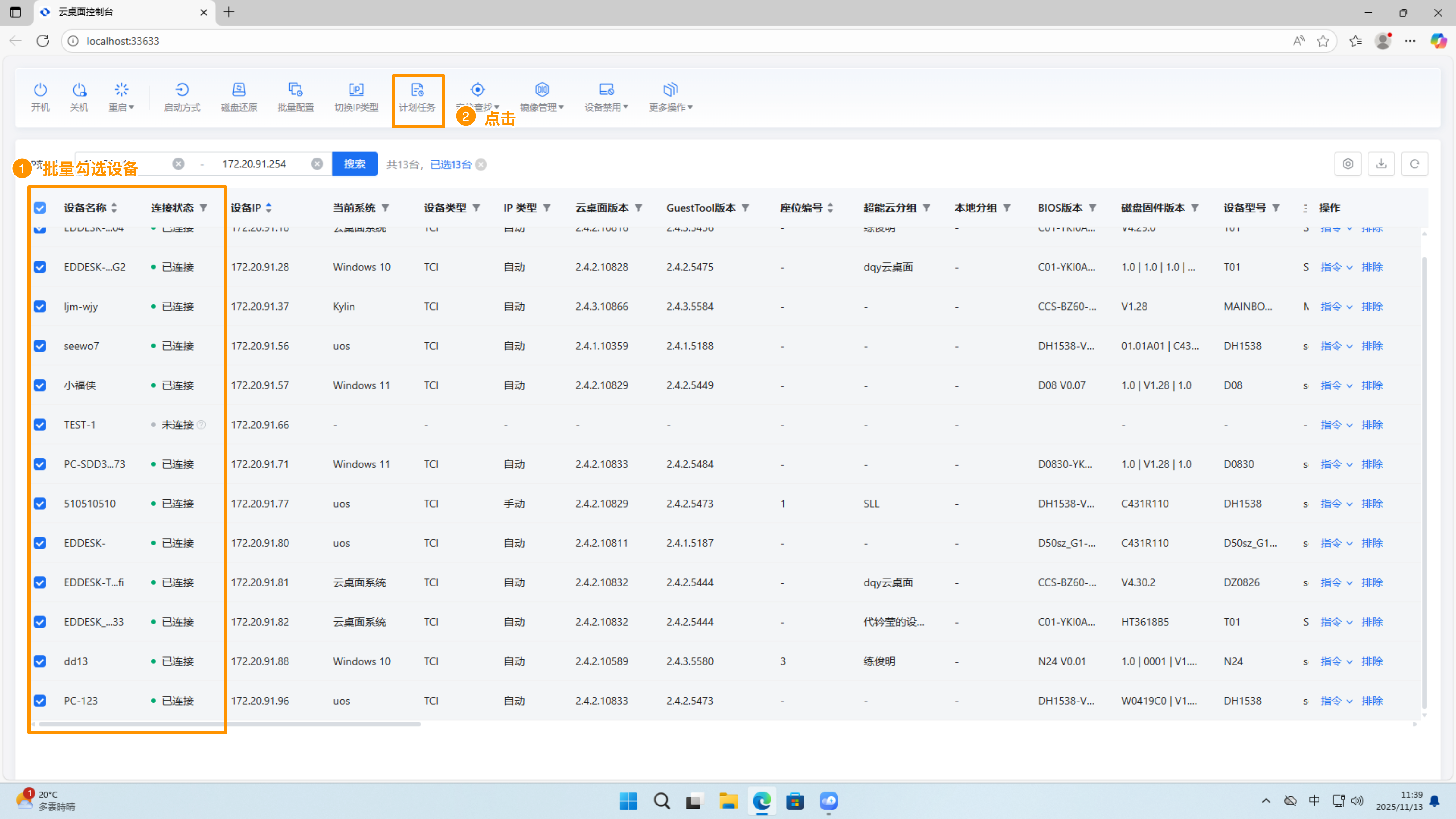 第一步:进入云桌面控制台,勾选需要下发任务的设备,点击【计划任务】