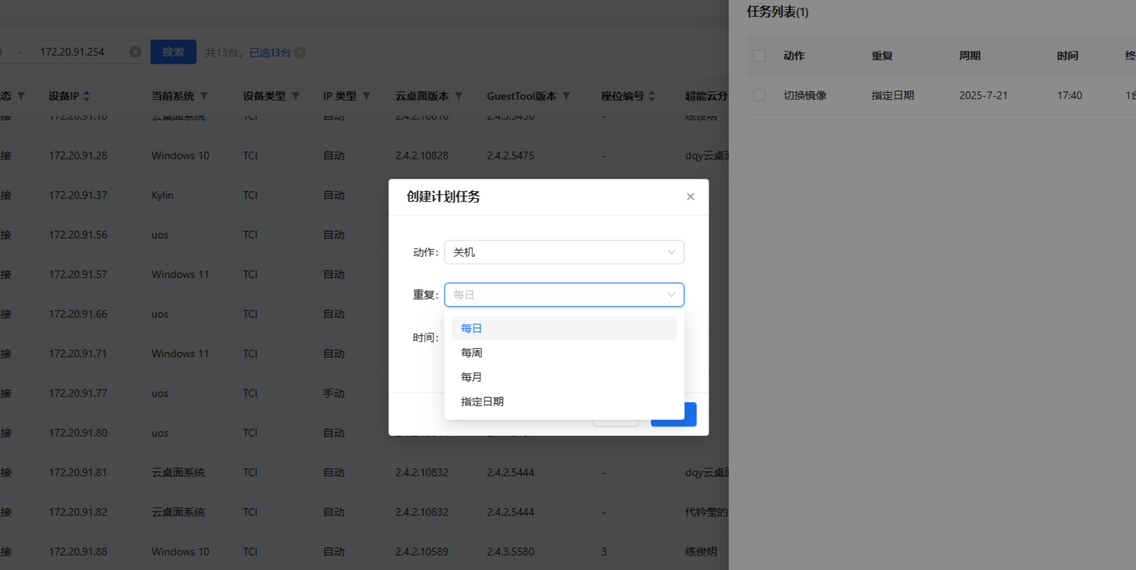 【计划任务】功能,可向批量设备下发计划任务,让终端设备在一定周期或指定时间下,自动开/关机、还原等