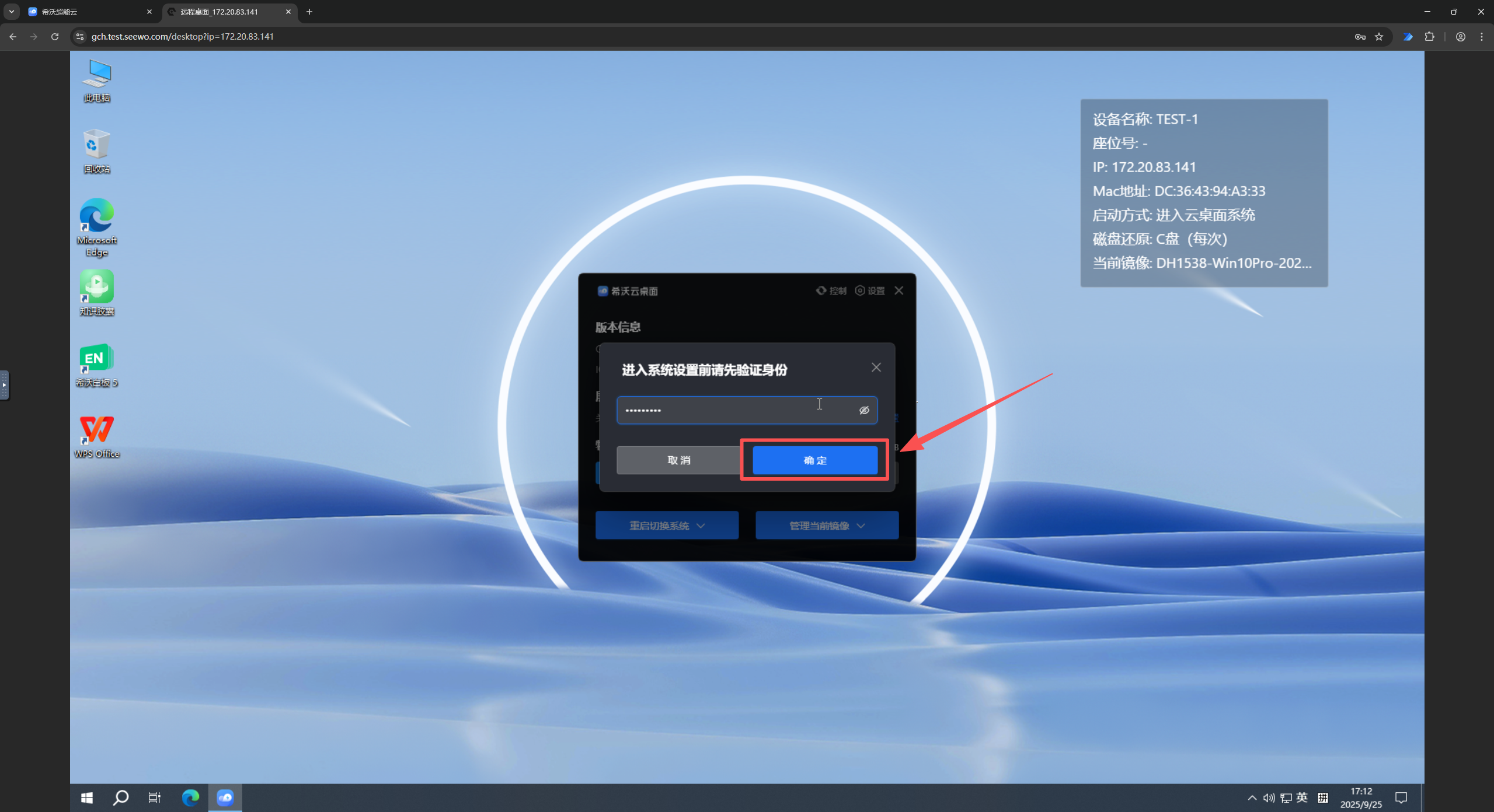 3.点击设置,输入管理密码后点击确认进入设置页面;