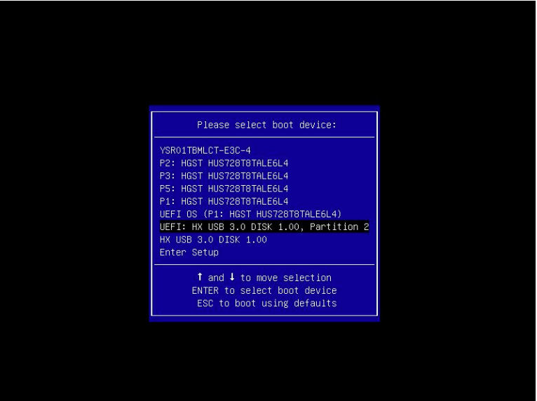 重启/启动服务器,在启动界面按F11,进入快速启动界面,并选择U盘进行启动