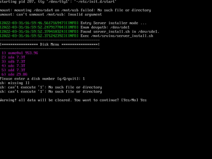 安装目标磁盘将被格式化,输入【Yes】,回车