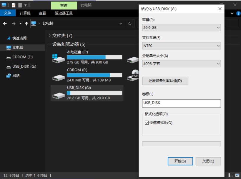 格式化U盘(USB_DISK),格式化文件系统选择【NTFS】