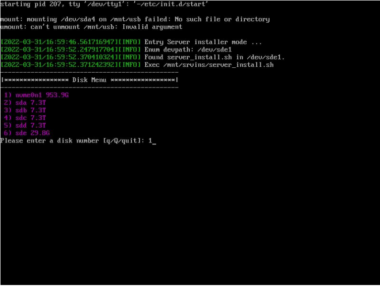 选择安装目标系统盘磁盘,通常服务器的系统盘为1)nvme0n1