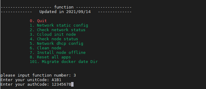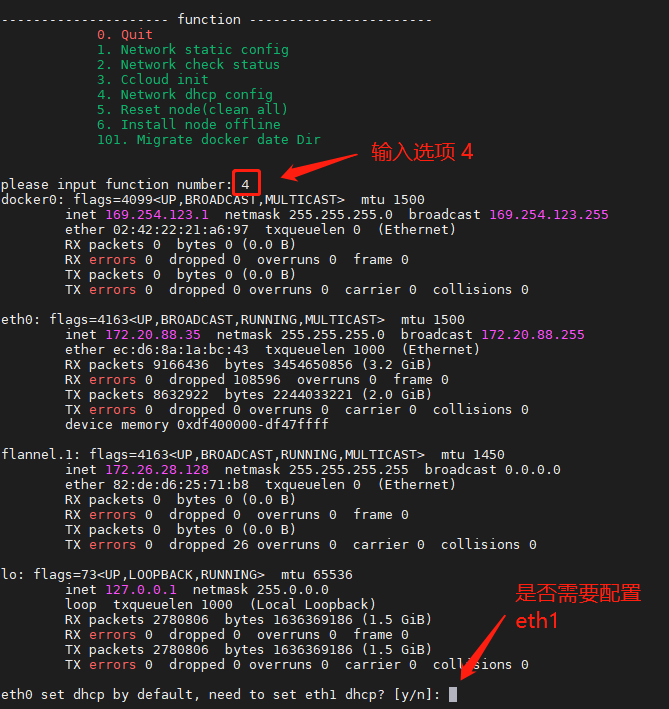 执行部署脚本后,显示功能选项,并提示输入功能选项序号(旧版本脚本只显示0/1/2/3):