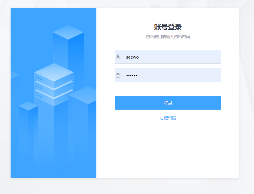 输入默认账号名称及密码。默认账号名称为:seewo; 默认密码:000000