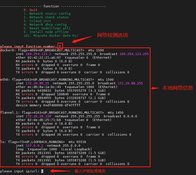 如果检测失败,则需要检查本机网络配置是否正确(返回功能1重新配置网络信息)。