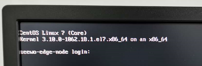 拨动设备电源按键后,等待操作系统启动,运行到开机命令行界面,如下图: