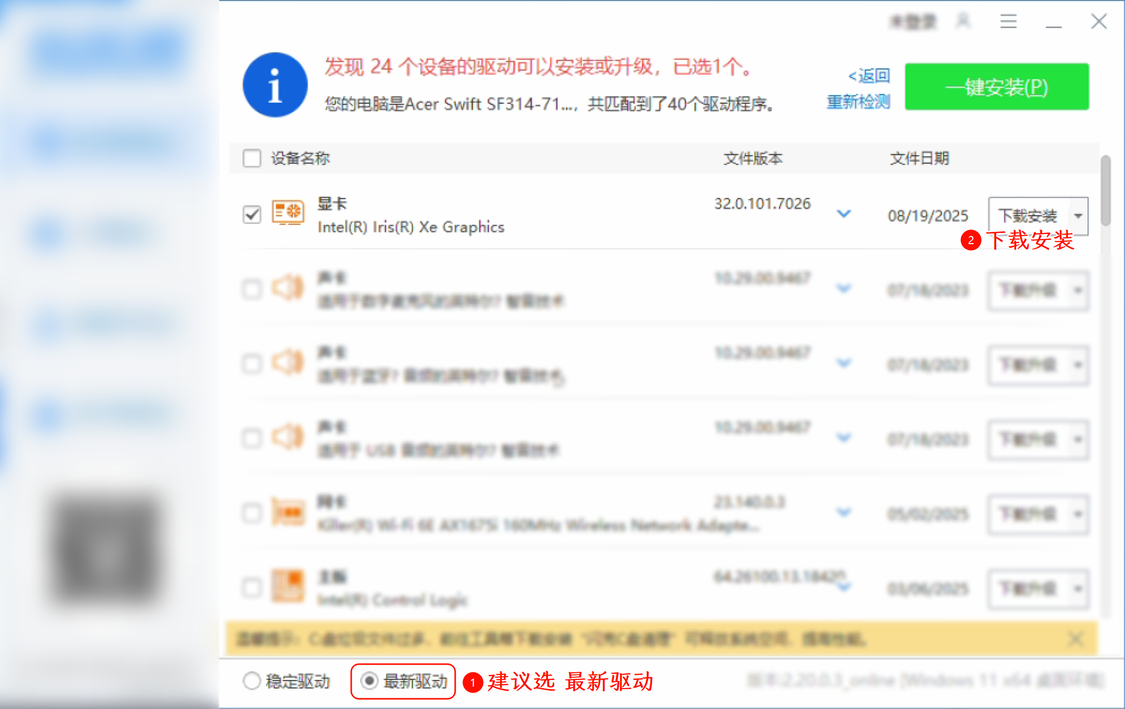 觉得官网太麻烦的,可使用 “驱动总裁”、“驱动人生”、“驱动精灵”、“360” 等(见下图)