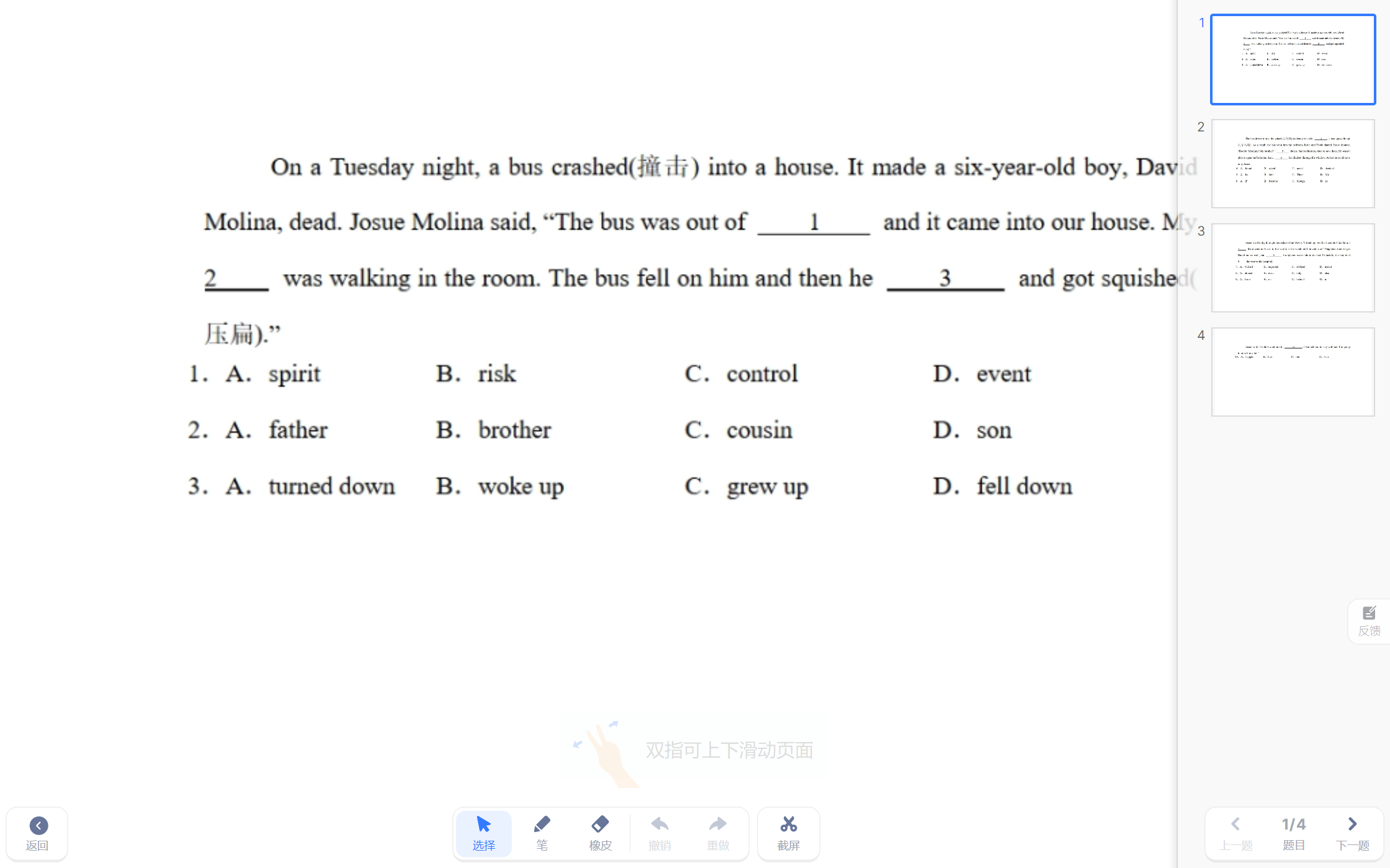 1.支持英语完形填空的切题与分段讲解,AI 可按段落智能切割题目,实现段落与题目一一对应,方便教师开展试卷讲评。