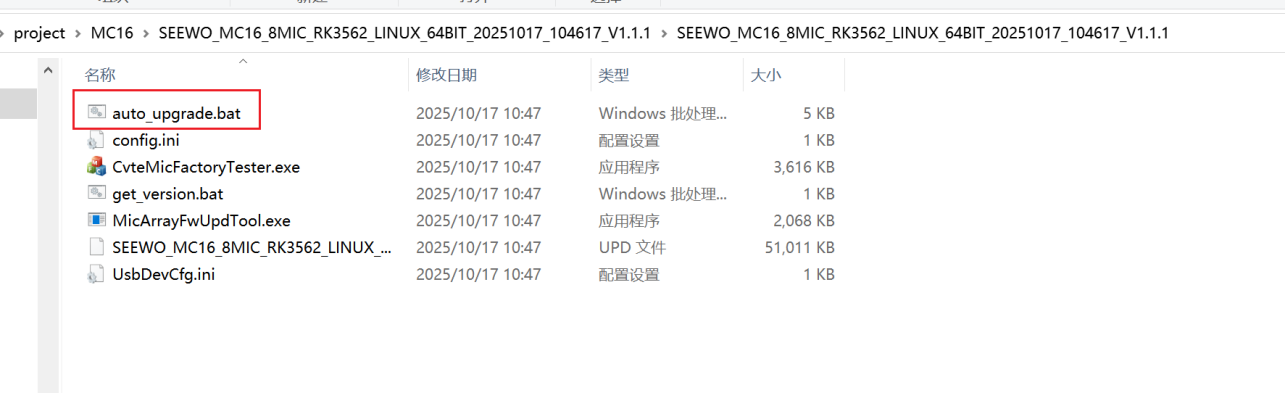 第二步、解压软件文件,解压如下,运行auto_upgrade.bat脚本即可正常升级