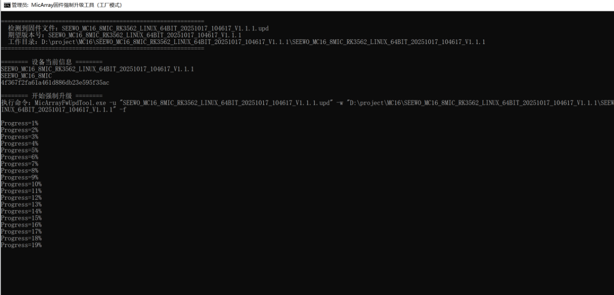 第三步、升级过程会在窗口中显示出来,升级大概2分钟左右,等进度条跑完后,升级完成。