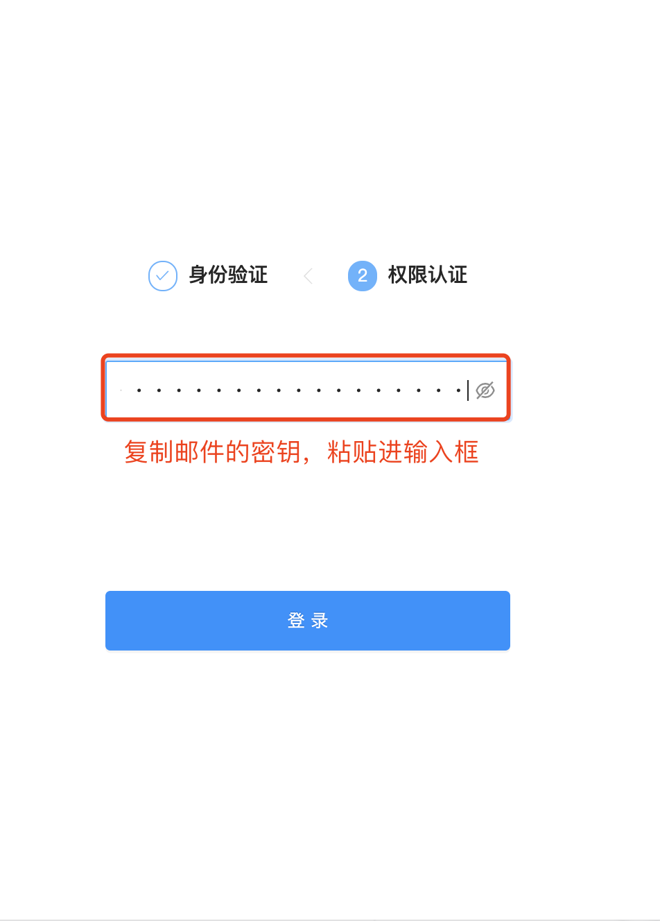 · 复制邮件中的密钥,粘贴在密钥输入框中