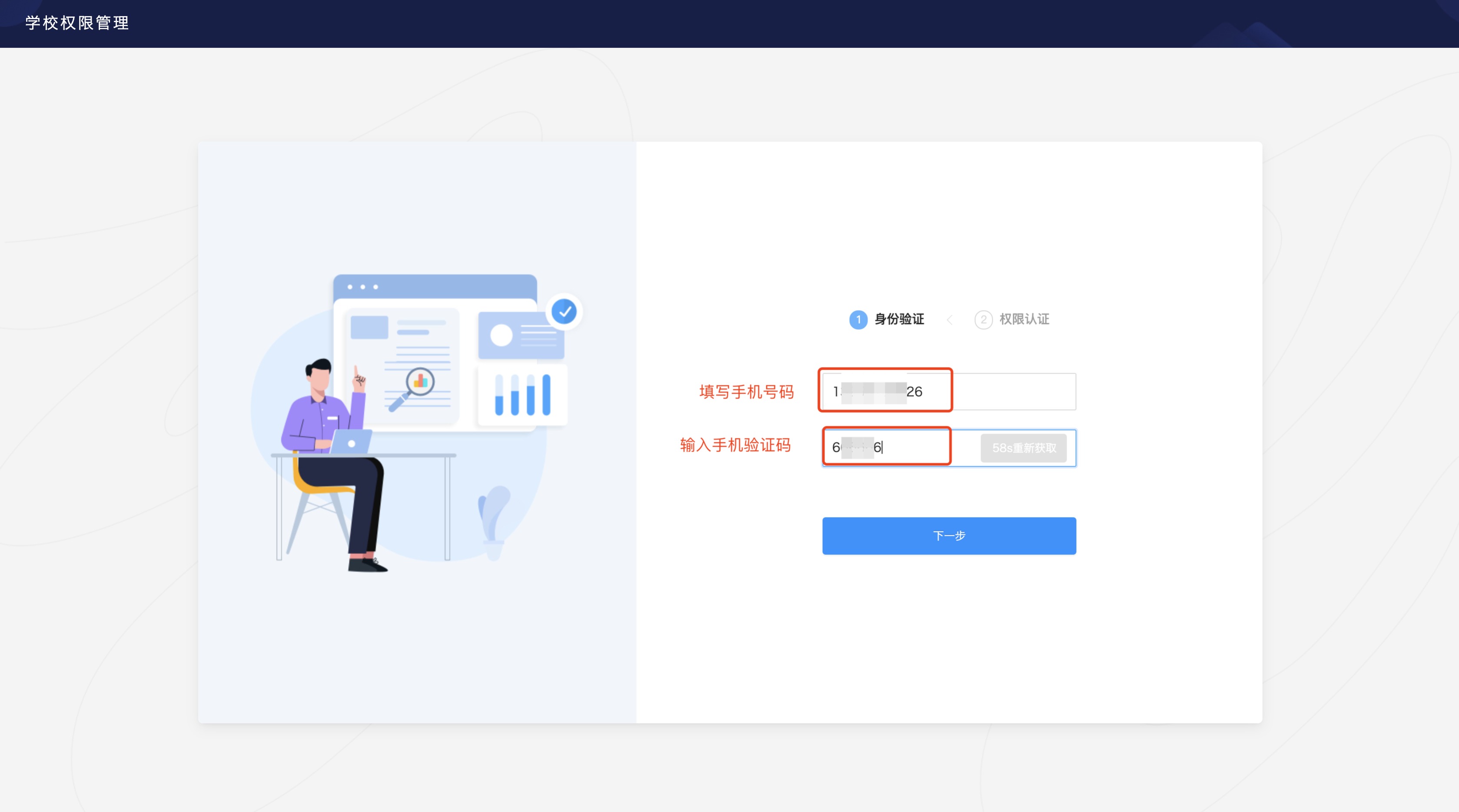 · 输入个人手机号码及验证码
