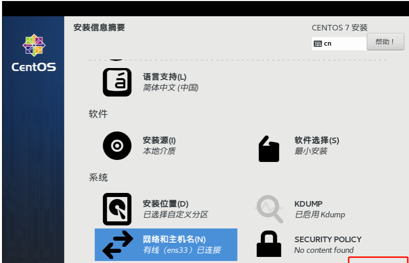⑦、点击网络设置,固定IP(此处设置完后,则不需要再使用VI进行编辑网卡信息固定IP),然后点击开始安装
