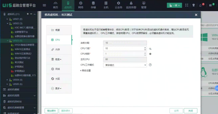2、学校在自己的超融合平台上(不同厂家超融合平台UI可能有所差异,此处是示例),根据所发的服务器配置要求,创建虚拟机(一般这一步是学校老师操作好的,不需要我们自己动手操作,但需要知道如何创建虚拟机)
