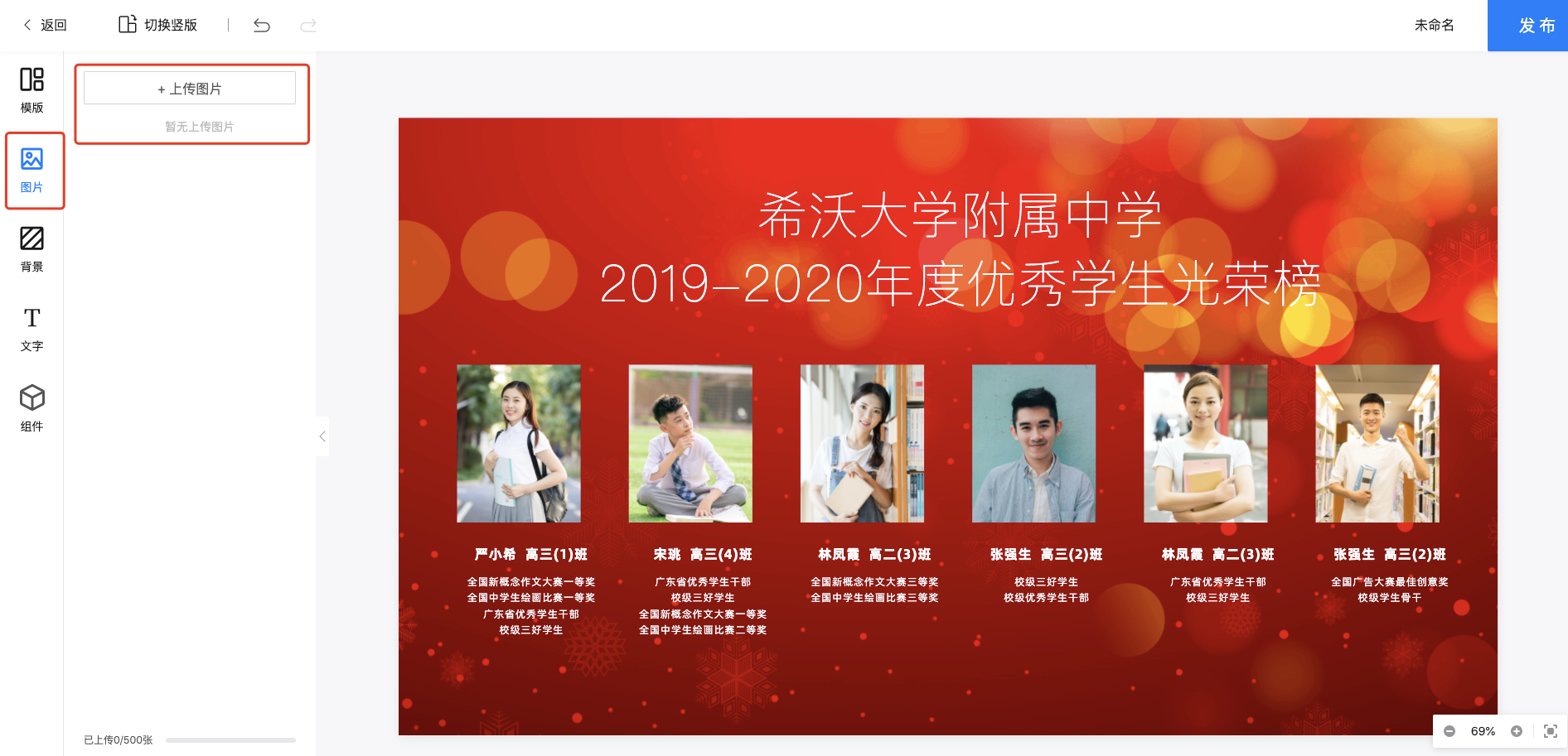 点击“创建海报”按钮,进入海报编辑页面。