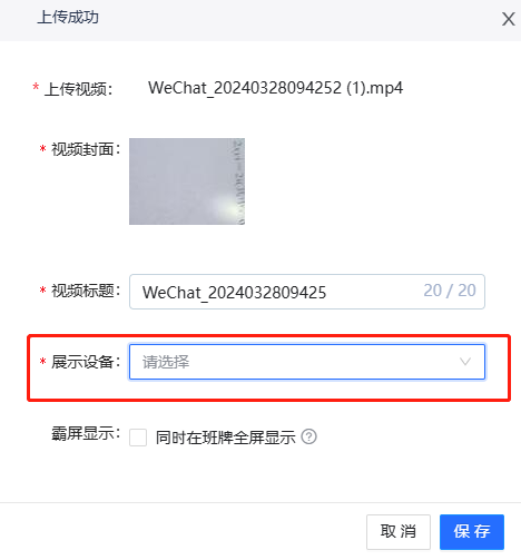 管理员在上传图片后,可以选择将上传的视频展示在全校或任意班级的设备上。同时,管理员可以将需要重要展示的视频在指定时段霸屏播放。